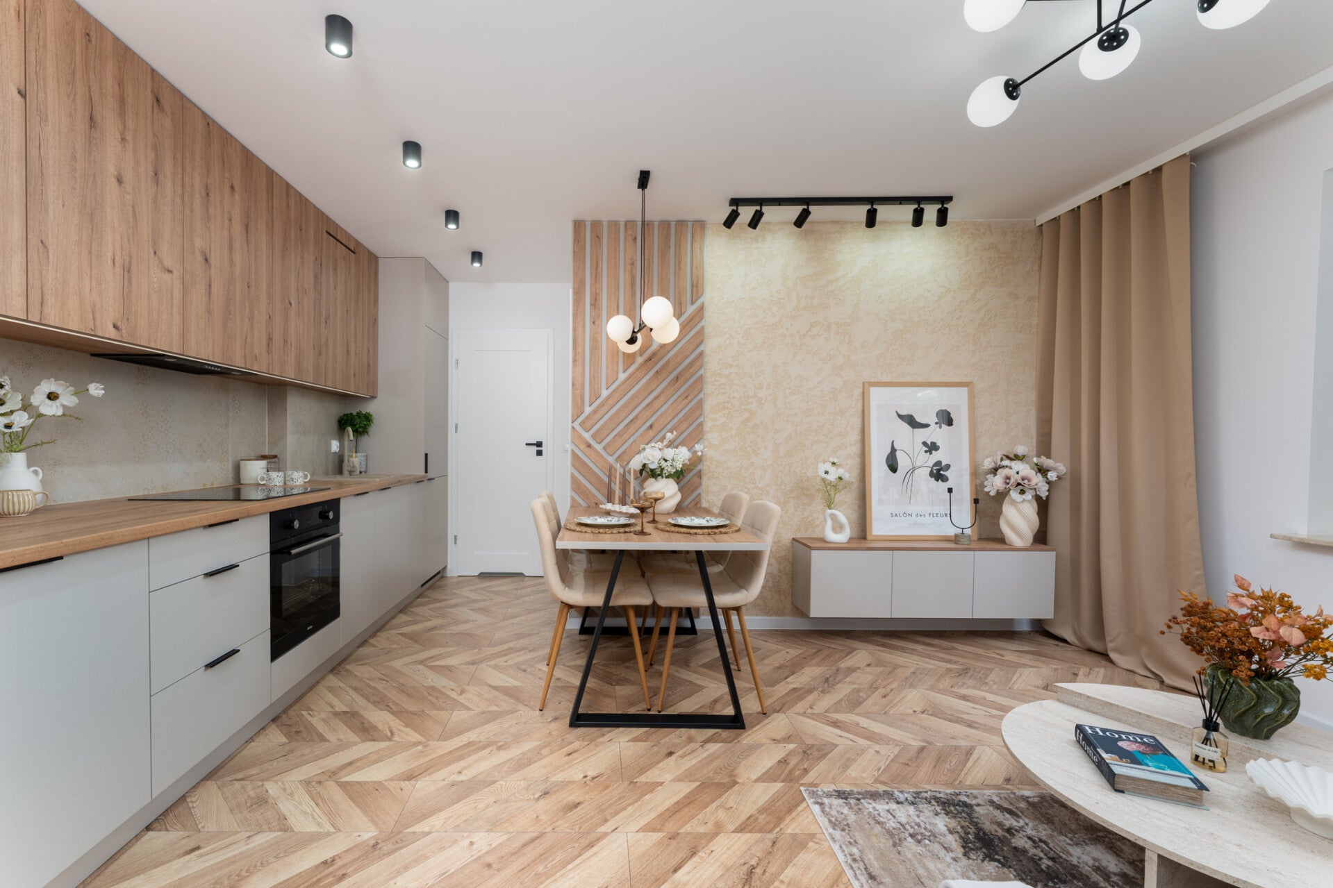 - salonu z aneksem kuchennym (15,7 m2 + 4,5 m2 = 20,2 m2) - ekspozycja zachodnia