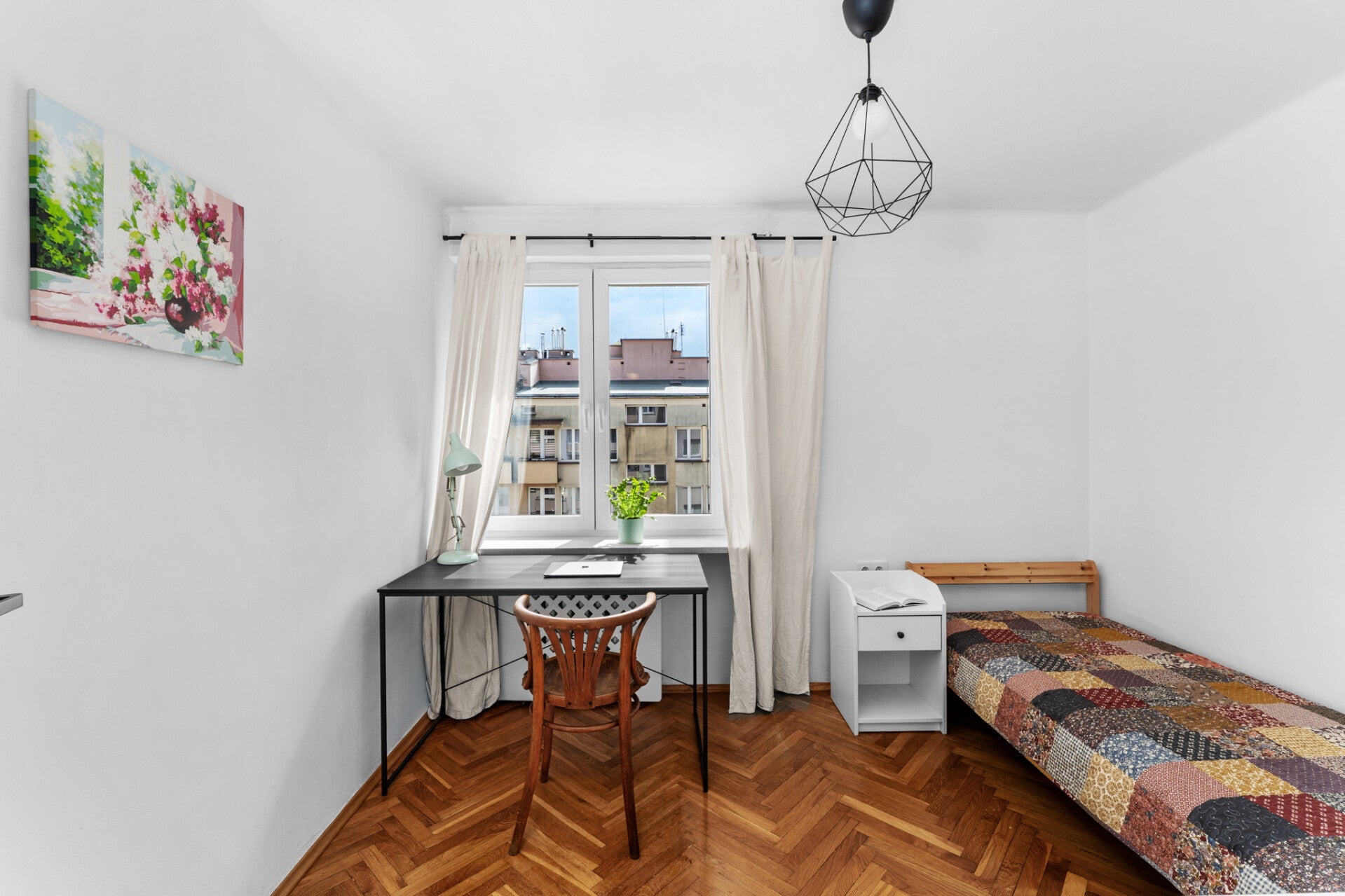- 3 niezależnych, ustawnych pokoi, zamykanych na klucz (pokój od południa z balkonem - 14,3 m2 - balkon o pow. 4,5 m2; pokój od północy - 13,9 m2, pokój od południa - 9,4 m2)